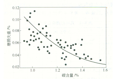 圖1鋼的磨損量與碳含量的關(guān)系
